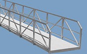 Four handrailing styles are available. The standard handrail is a bolt together system using 1-1/4” aluminum pipe. The Classic, Weaved and ADA styles are all-welded railings using 1-1/2” square tubing. Gangways are available in many widths and lengths to suit your needs. Choose from truss or tubular frame construction and four decking options. You may also add optional piano hinges, rollers, handrailings, mid rails, kick rails, tie rails, and end loops to enhance your walkway design.