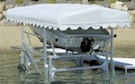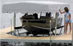 Whether it’s a fishing boat, pontoon, personal watercraft or high performance speed boat, DockStop has a boat lift perfectly sized, equipped and priced for your needs. Our Hewitt Lifts keep your watercraft conveniently at the ready while also protecting them from the damaging effects of prolonged exposure to waves, algae and floating debris. Our canopies provide additional protection, shielding your boat from rain, hail and sun.