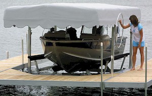 The Hewitt Hi-Lift is an economical, direct vertical rise lift that is ideally suited for deeper water applications or sites where water levels can fluctuate regularly. These lifts are based on simple, proven technology but are distinguished by Hewitt’s rock-solid construction and unique frame design. Hewitt Hi-Lifts incorporate side bars that provide greater stability than “V”-style side designs. Side bars are also set lower for easier boat access. While some competitive lifts have adjustable sidebars, these designs limit maximum lift height. Ten Hi-Lift models provide lifting capacities ranging from 1,100 lbs. to 10,000 lbs.