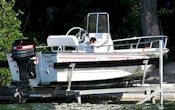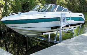 Cantilever lifts can also be configured with an aluminum pontoon bed (shown above) or full-length “V” style vinyl or carpeted wood beds that evenly distribute the pontoon’s weight and provide full-length protection.
