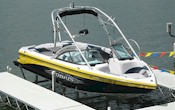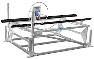 Kits can be installed in place of the standard boat cradles. Options include wood and adjustable aluminum rack kits that lift under the pontoon’s deck and serve as positioning guides.